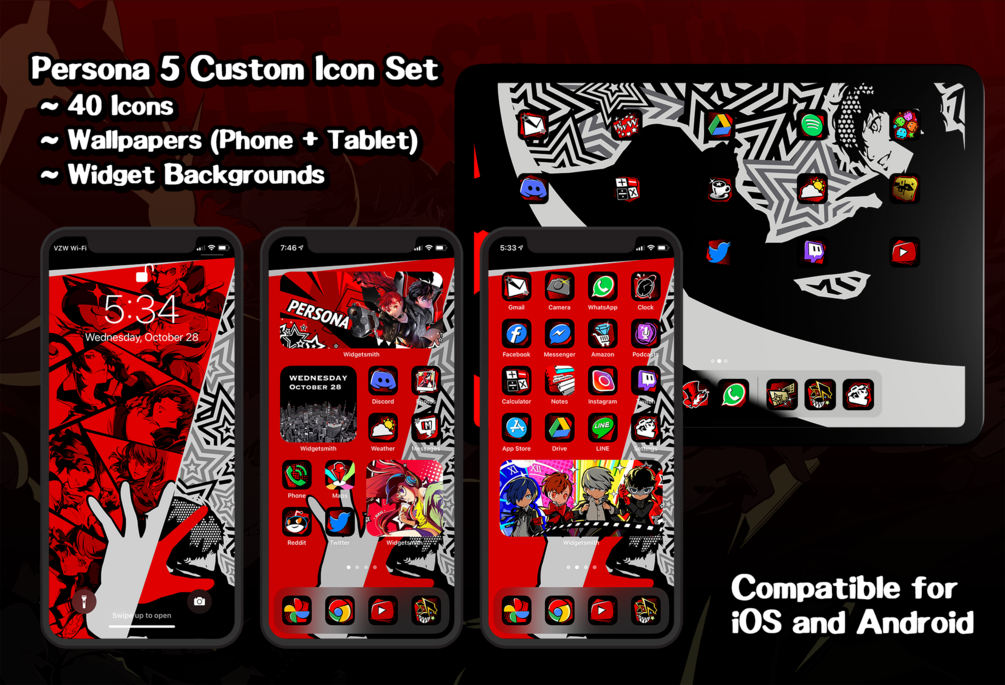 A custom-made Persona 5 icon set for iOS and Android. Packs include: